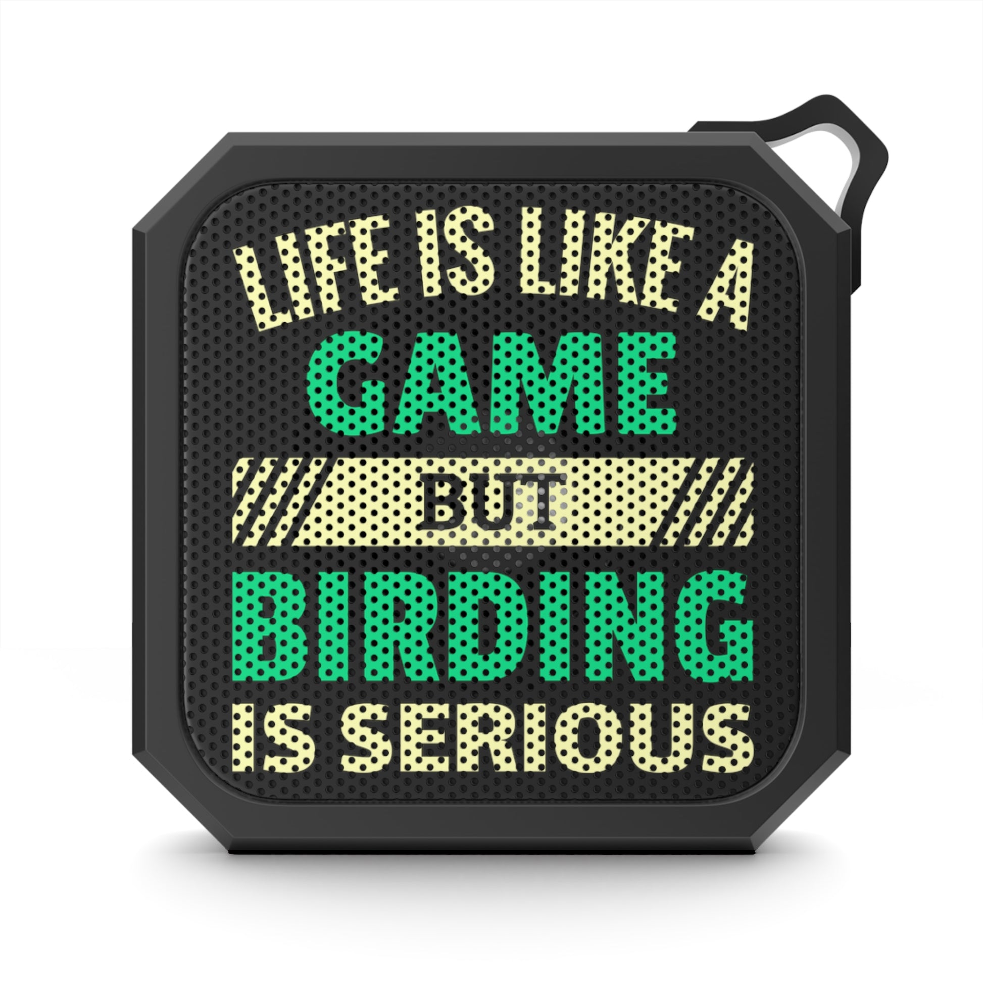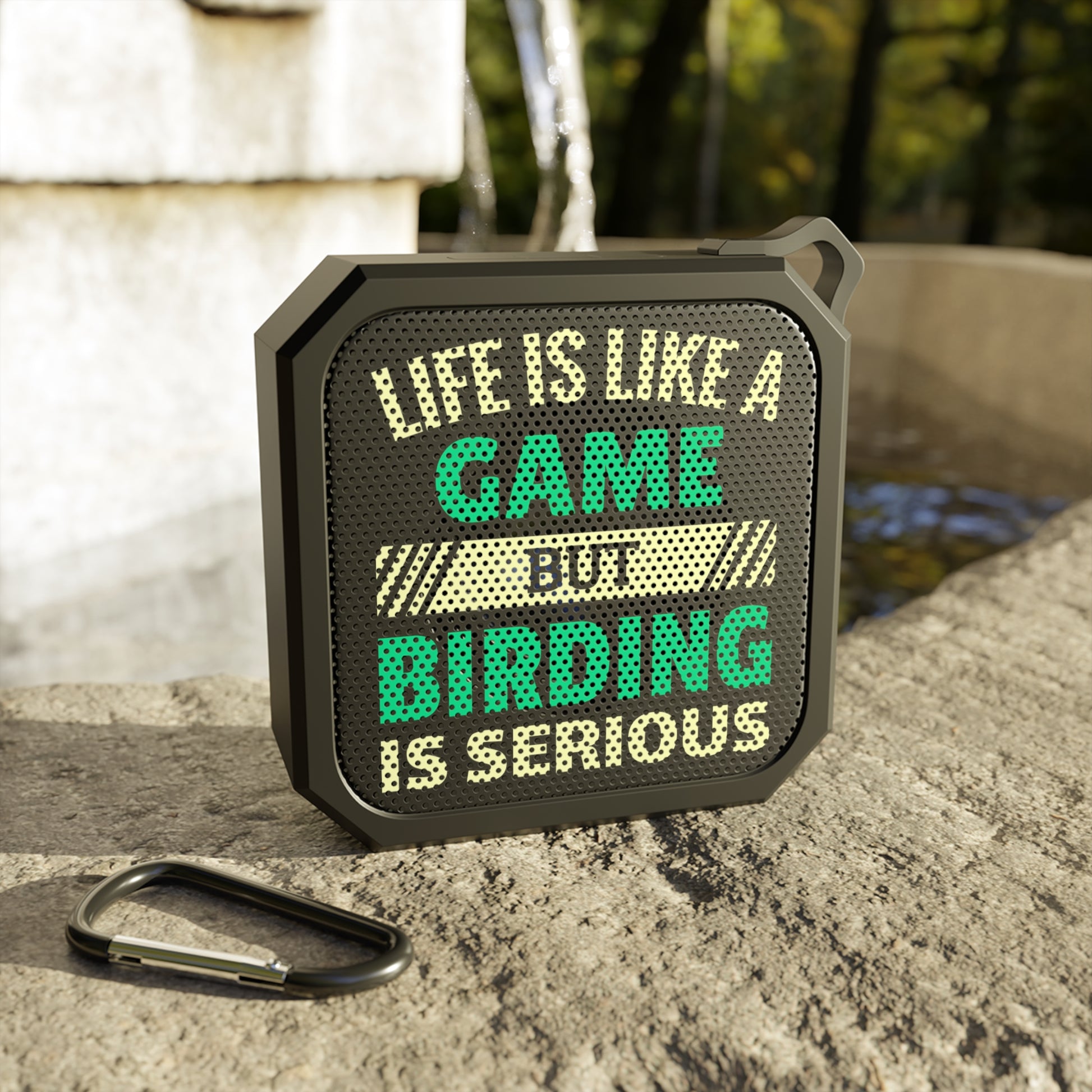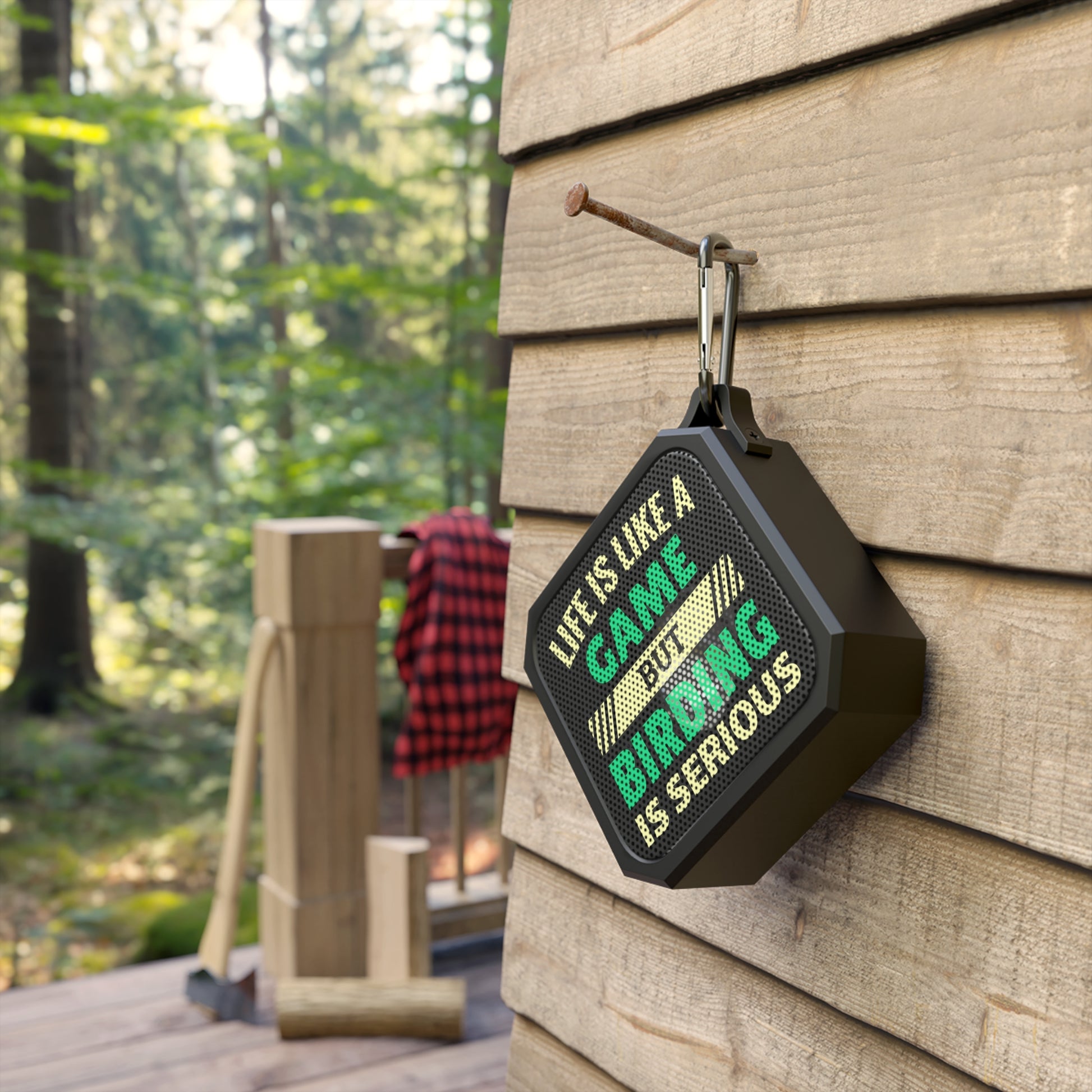 Elevate your outdoor expeditions with our Bluetooth speaker, featuring the witty phrase "Life is a game, but Birding is serious." This compact, IPX6-certified waterproof device is your perfect companion for your birding treks and adventures. Stream your favorite birdsongs or calls with crystal-clear audio for up to 2 hours. Easily clip it to your gear and stay connected up to 33 feet away. Don't just observe nature – immerse yourself in it. Enhance your birding experience; order now!