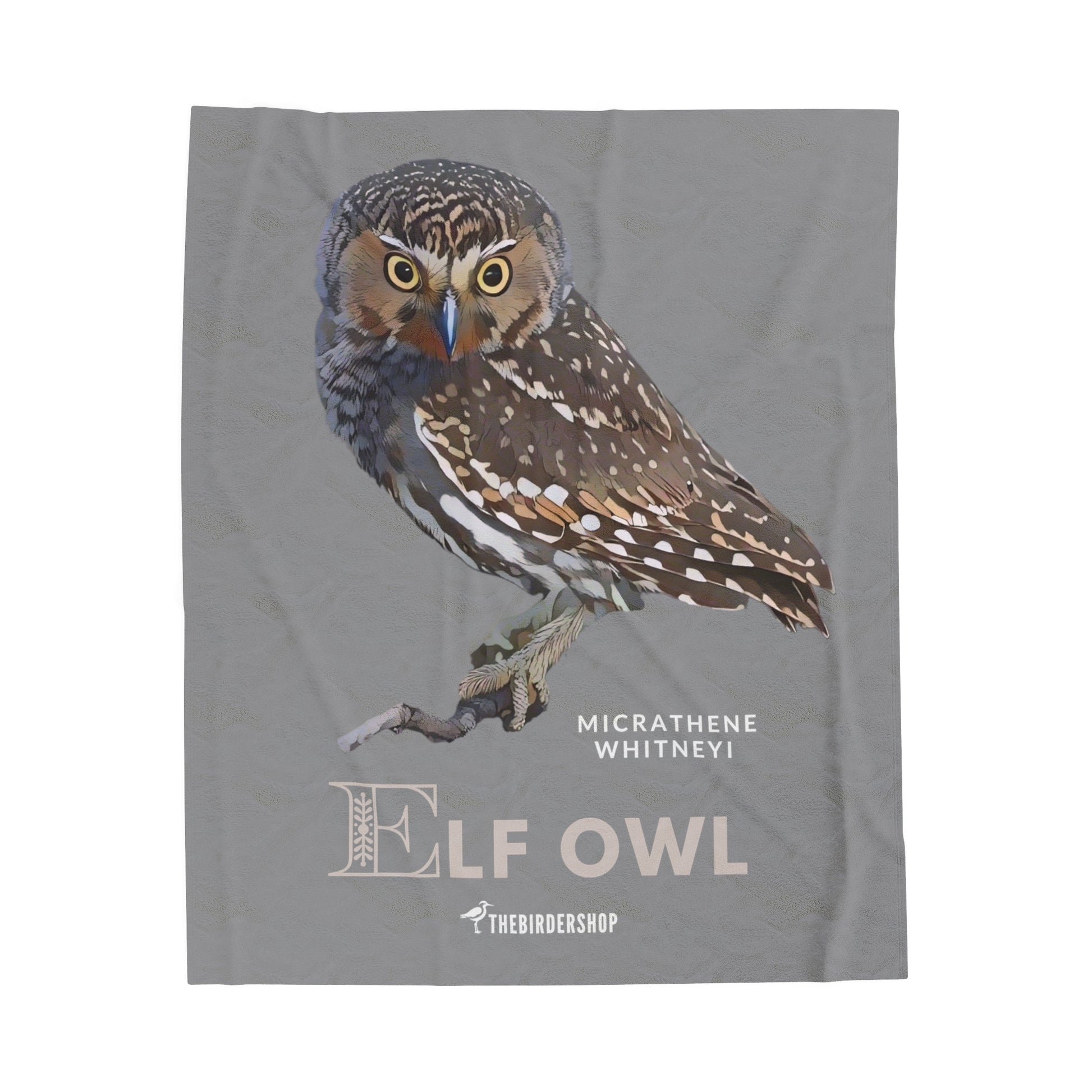 Elevate your comfort with our luxurious Elf Owl velveteen blanket. Ideal for birders who love neotropical species, this blanket features the enchanting Elf Owl, a tiny raptor found in desert and woodland habitats. Crafted from plush velveteen, it offers unparalleled softness and warmth, perfect for any home. The one-sided print brings the charm of the Elf Owl to life, making it a unique addition to your decor or a thoughtful gift for fellow bird enthusiasts. Size: 50x60".