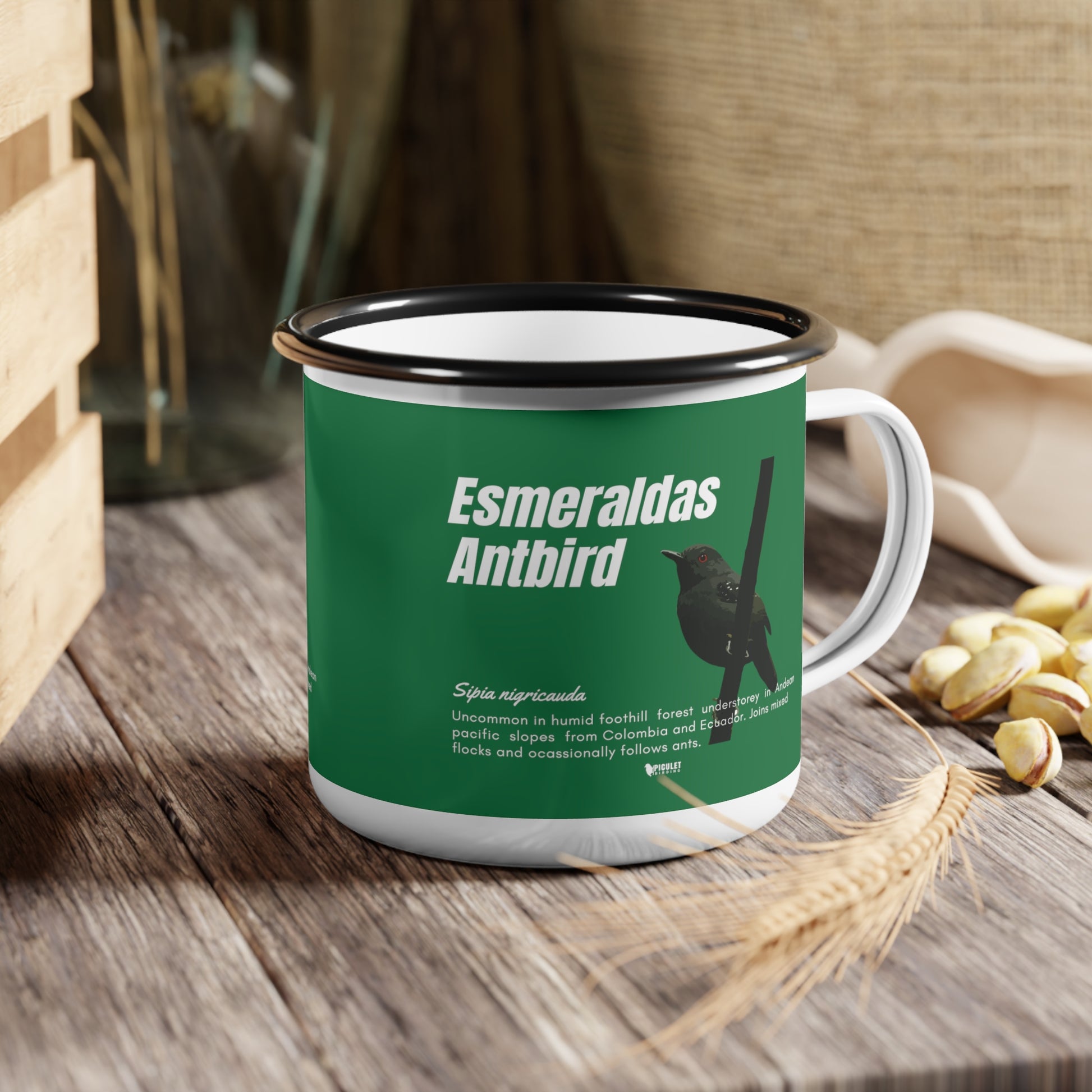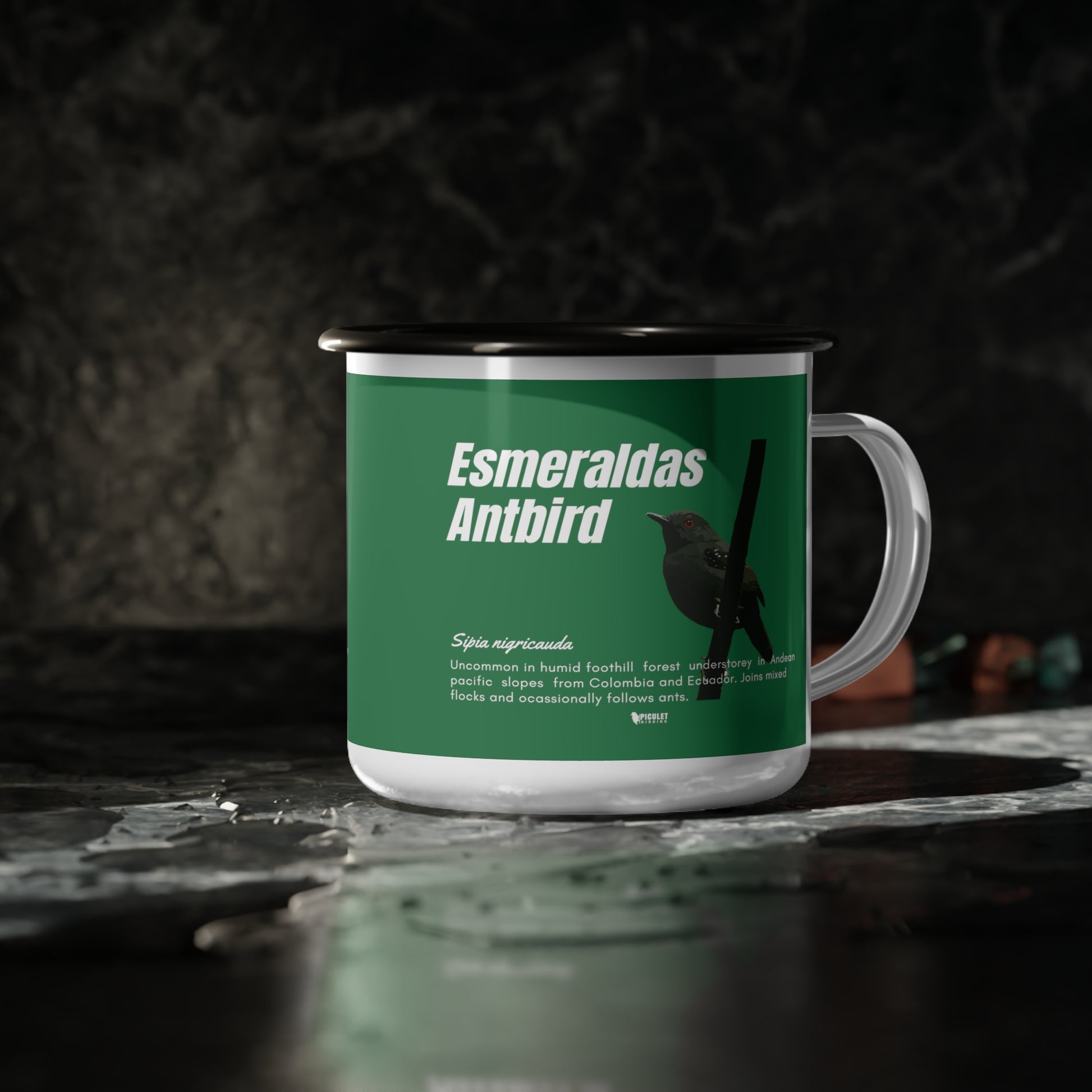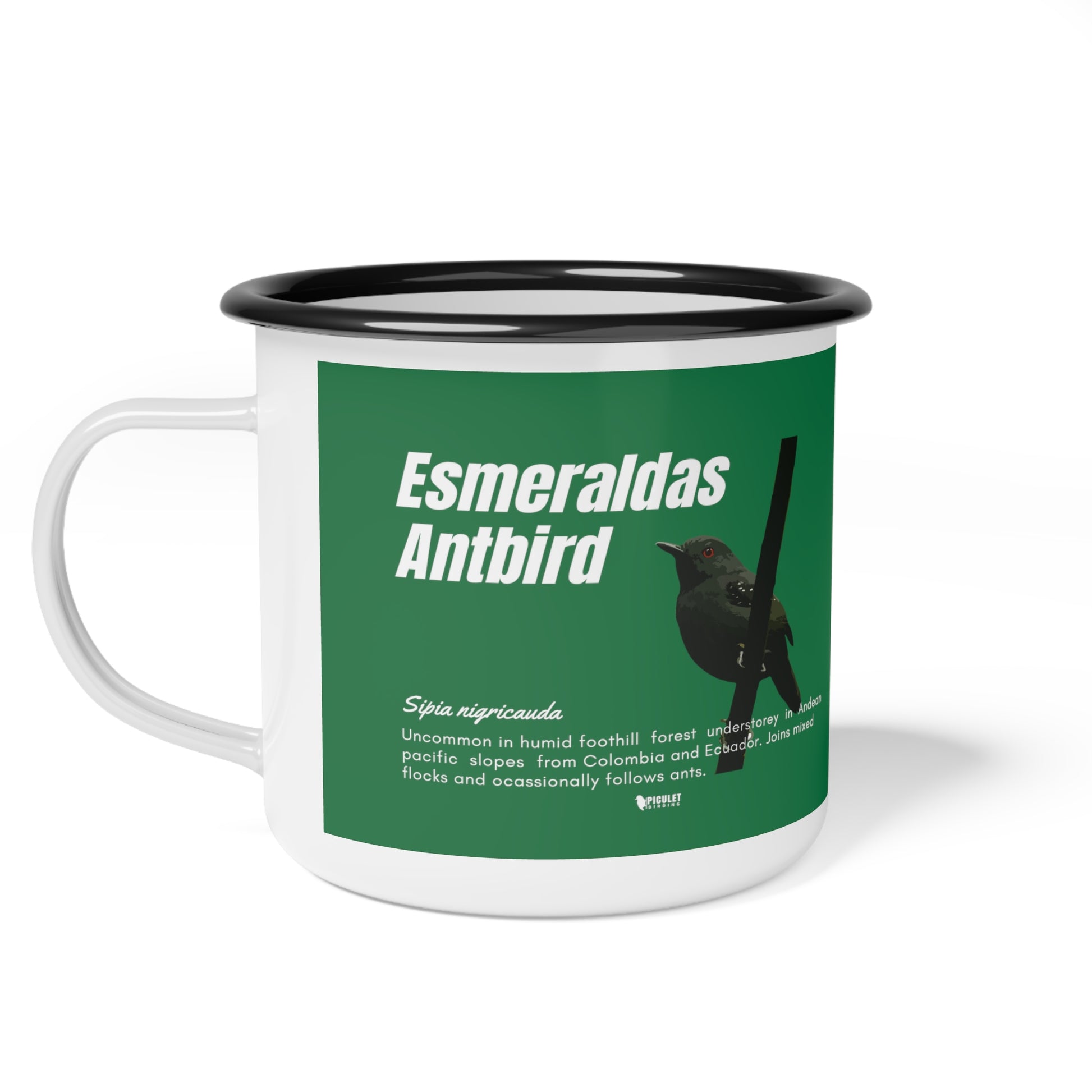 Discover the ultimate companion for your birding adventures with our Metallic Camp Cups, featuring a stunning design of the elusive Esmeraldas Antbird. Perfect for birders who cherish neotropical species, this 12oz enamel mug is built for the Great Outdoors, offering durability and style. Its anti-alkali and acid-proof properties ensure it withstands the toughest conditions, while being dishwasher safe for easy cleaning at home. Embrace the beauty and mystery of the Esmeraldas Antbird with every sip, and make this unique camp cup your go-to for every adventure.
