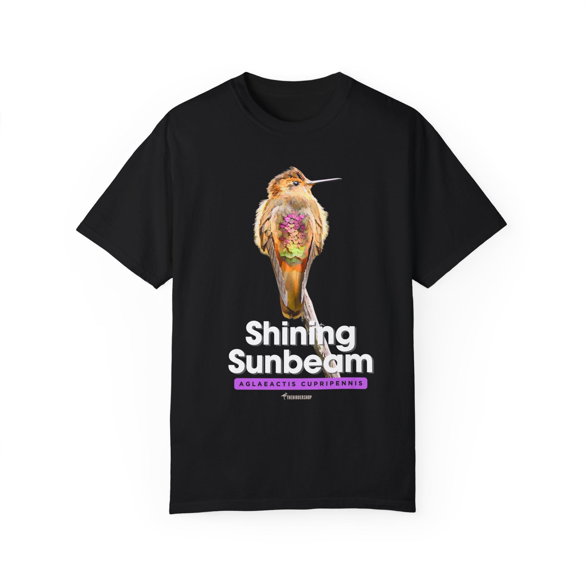 Discover the mesmerizing beauty of the Shining Sunbeam with our exclusive t-shirt design! This elusive hummingbird, with its lilac-gold iridescent plumage, inhabits high-altitude cloud forests, making it a true gem for avid birders. Our garment-dyed, 100% ring-spun cotton tee offers unparalleled comfort and durability for your Neotropical adventures. Don't miss this chance to showcase your passion for rare, endemic species. Purchase now and share the wonder with your fellow birders!