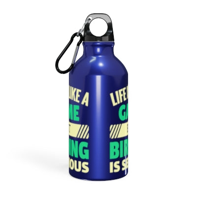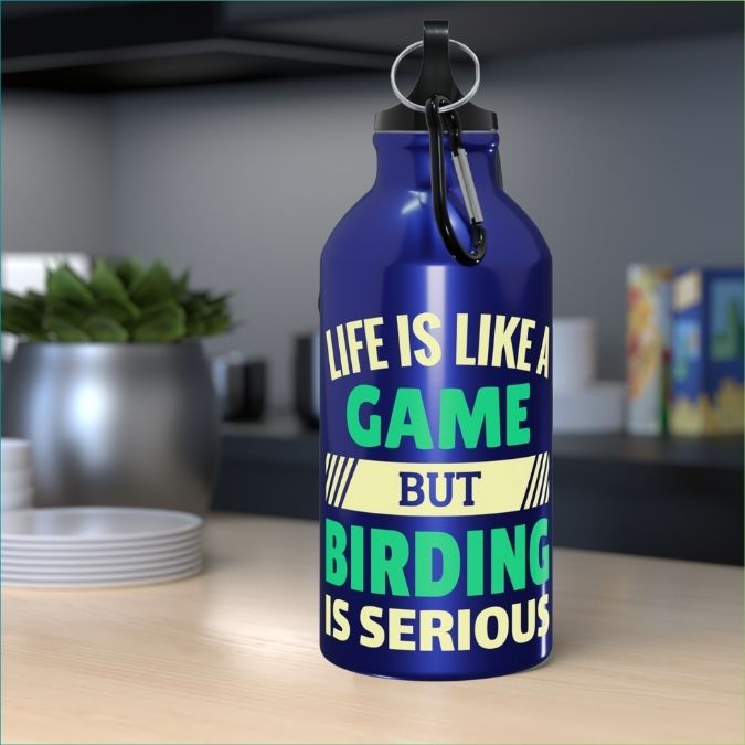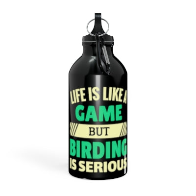 Quench your thirst for adventure with our eye-catching water bottle that boldly declares, "Life is a game but Birding is serious." This 13.5 fl.oz companion is your perfect ally for dawn expeditions and challenging trails. Lightweight and equipped with a handy carabiner, it keeps your hands free for binoculars or cameras. Join the flock of passionate birders who've made this their go-to hydration solution. Don't let dehydration clip your wings – grab yours now and stay refreshed on every birding quest!