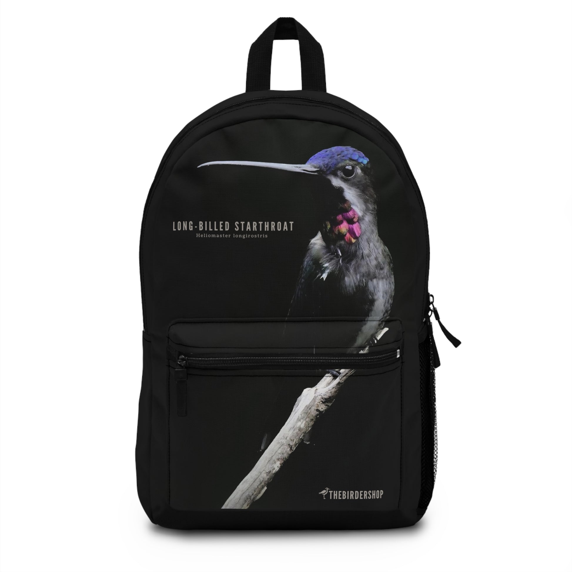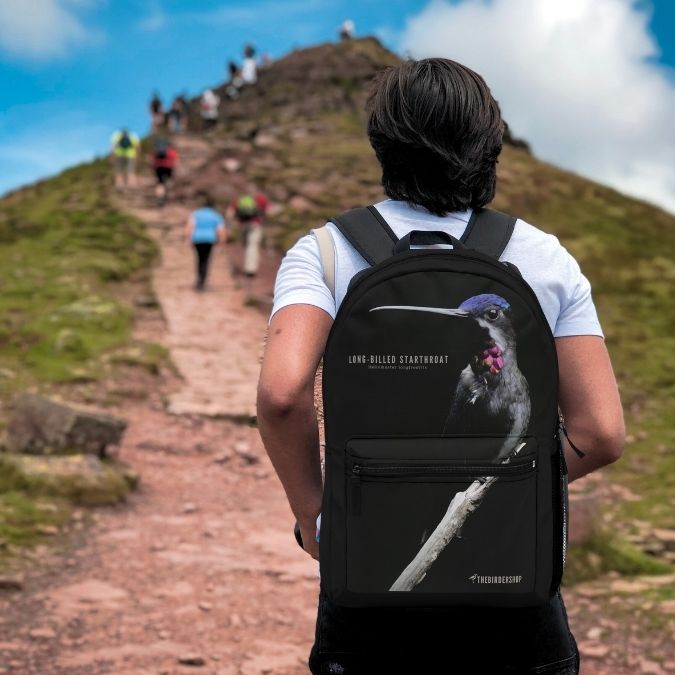 Elevate your birding adventures with our Long-billed Starthroat backpack, designed for those who appreciate the vibrant beauty of hummingbirds. Made from lightweight, durable polyester, this waterproof backpack features padded mesh back panels and adjustable straps for ultimate comfort and breathability. Perfect for carrying all your essentials, it retains its shape and dries quickly. Showcase your love for these remarkable hummingbirds and embark on your next birding journey in style with this versatile, eye-catching backpack.