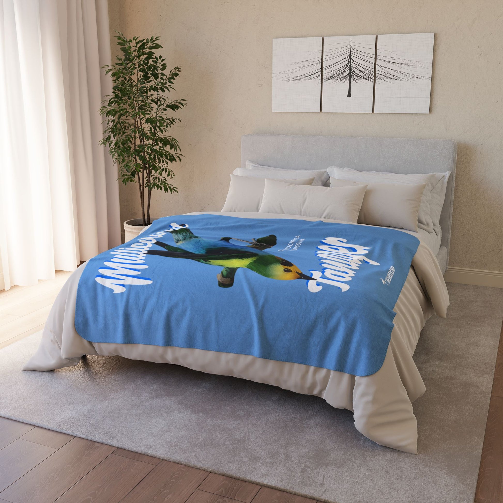 Bring the vibrant beauty of neotropical birds into your home with the Multicolored Tanager Sherpa Blanket! This luxurious 100% polyester fleece blanket features a stunning high-resolution image of the Colombian endemic Multicolored Tanager. With its vivid yellow face, green nape, and bright blue underparts, this blanket is a visual masterpiece. Available in two sizes, it offers stylish comfort with a textured sherpa underside. Order now and combine your love for birding with cozy everyday comfort. Your new favorite blanket is just a click away!