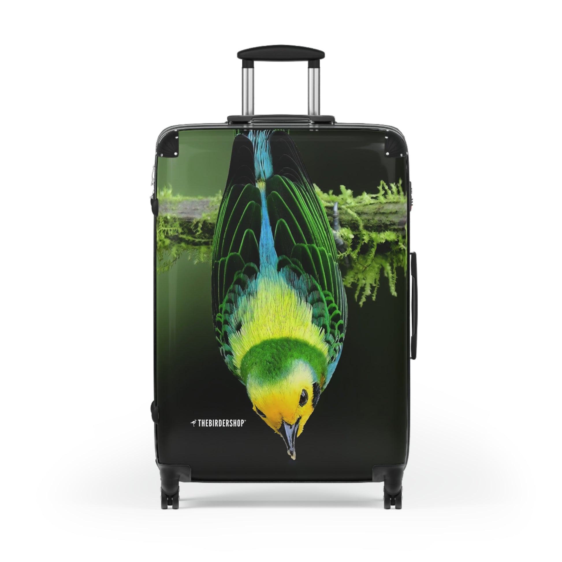 Capture the vibrant allure of neotropical birds with the Multicolored Tanager Travel Suitcase, perfect for birdwatchers who cherish exotic and elusive species. Adorned with the striking image of the Colombian endemic Multicolored Tanager, this suitcase combines style and functionality with its high-resolution print, durable PC shell, adjustable handle, 360-degree swivel wheels, and safety lock. Glide through airports with a suitcase that stands out and showcases your passion for birding. Order now and let every journey be a step towards your next great birding adventure!
