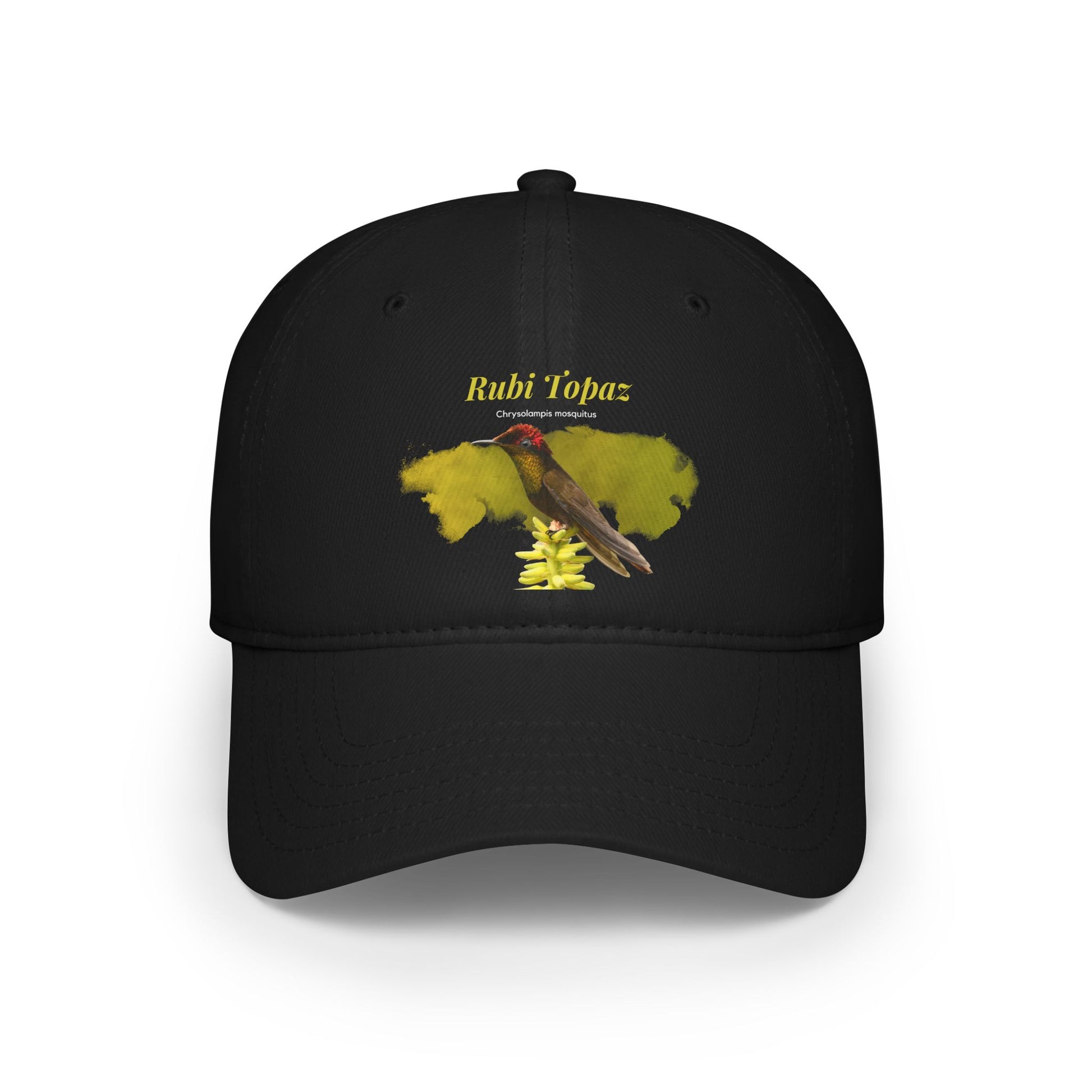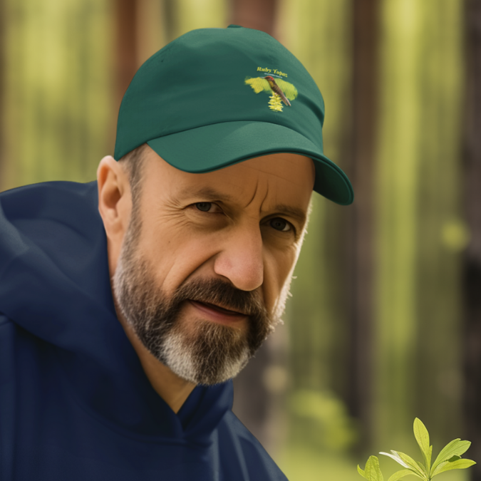 Elevate your birding experience with our Ruby-topaz Hummingbird cap. Ideal for birders who cherish rare, colorful species, this cap showcases the exquisite Ruby-topaz Hummingbird. Crafted from 100% cotton, the 6-panel, structured design provides a stylish low-profile look. Celebrate the dazzling beauty of this tropical gem, found from Colombia to Bolivia, and add a touch of neotropical elegance to your adventures with this unique birding cap.