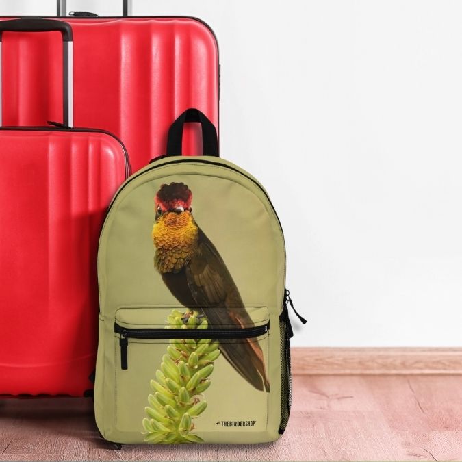 Discover the vibrant beauty of neotropical birding with our Ruby-topaz Hummingbird backpack. This backpack features the stunning Ruby-topaz Hummingbird design. Made from durable spun polyester, it’s lightweight yet strong, perfect for all your adventures. With ample room for your gear, this backpack combines functionality with style. Celebrate the dazzling beauty of the Ruby-topaz Hummingbird, a gem of tropical forests from Colombia to Bolivia, and make every journey extraordinary with this unique accessory.