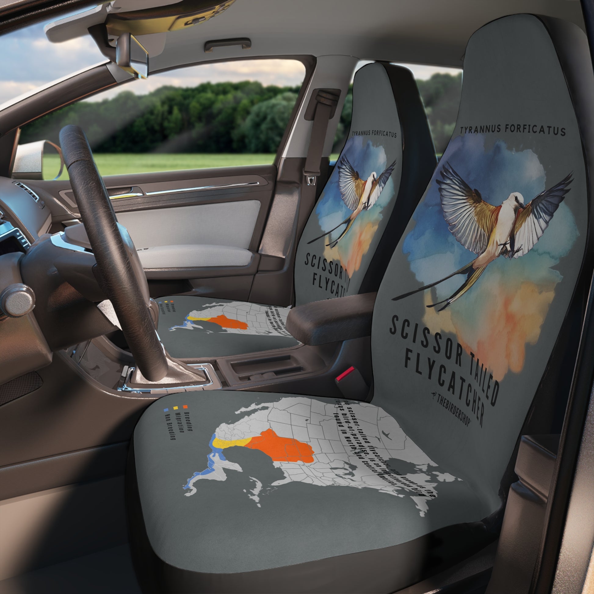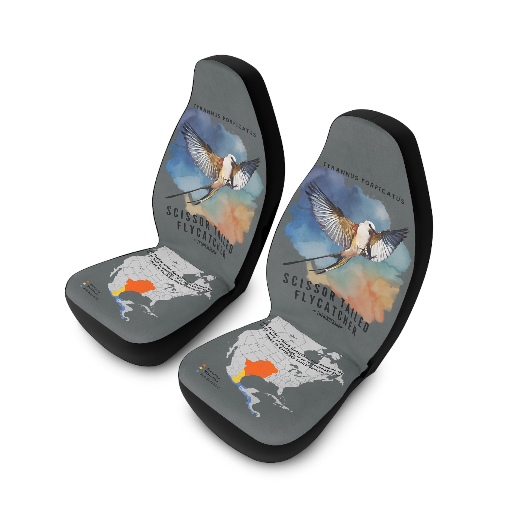 Upgrade your vehicle's interior with our Scissor-tailed Flycatcher car seat covers. Designed for birders who appreciate North American species, these covers showcase the striking Scissor-tailed Flycatcher, known for its elegant long tail and graceful insect-catching swoops. Made from durable polyester fabric, they ensure a snug, secure fit with an easy-to-install elastic fastening system. Bring the beauty of this remarkable bird into your car and enjoy a touch of nature every time you drive with these unique car seat covers.