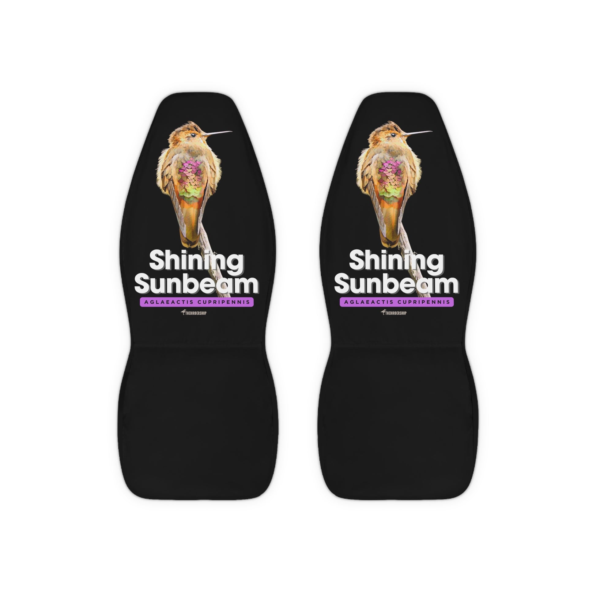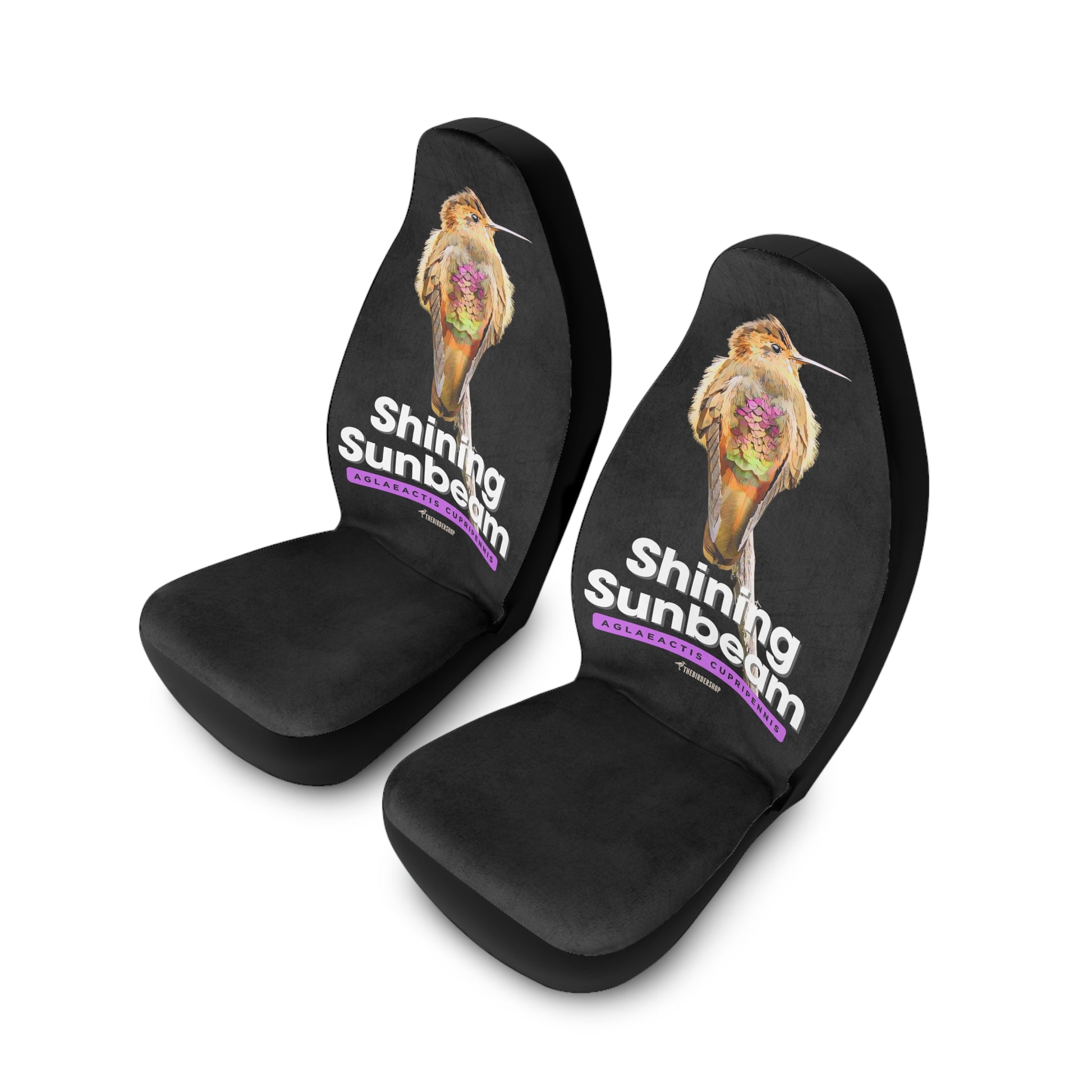 Immerse yourself in the rare beauty of this elusive hummingbird's lilac-gold iridescence, now adorning your vehicle's interior. Crafted from durable polyester, these easy-to-install covers offer both style and protection. Don't miss this limited opportunity to showcase your passion for Neotropical avian treasures. Transform your car into a birder's paradise – order now and let your adventures shine!