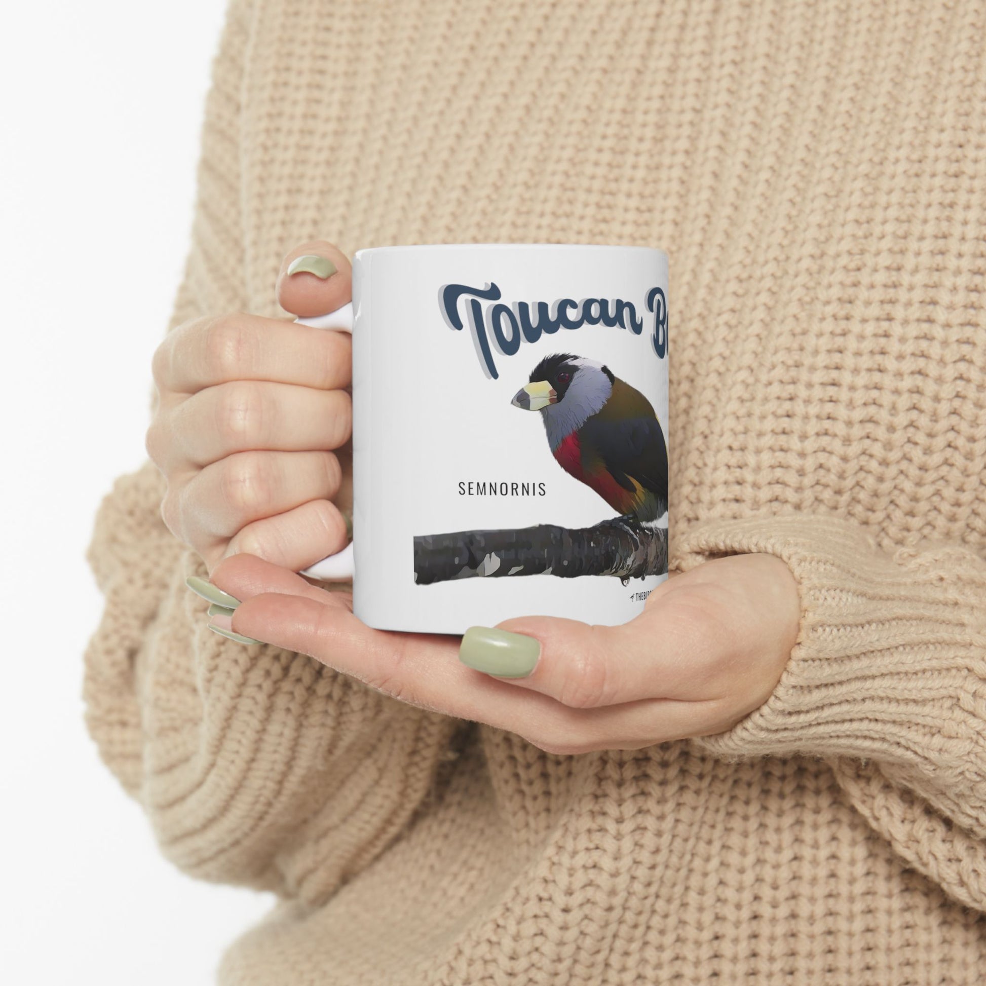 Created for bird enthusiasts who value unique and colorful species, these mugs feature the vibrant Toucan Barbet design. Made from durable white ceramic, they come in 11-ounce size, and are both BPA and lead-free, microwave, and dishwasher-safe. The advanced printing technology ensures vivid colors that bring this stunning bird to life. Enjoy your favorite beverage while celebrating the beauty of this unique species from western Colombia and Ecuador.