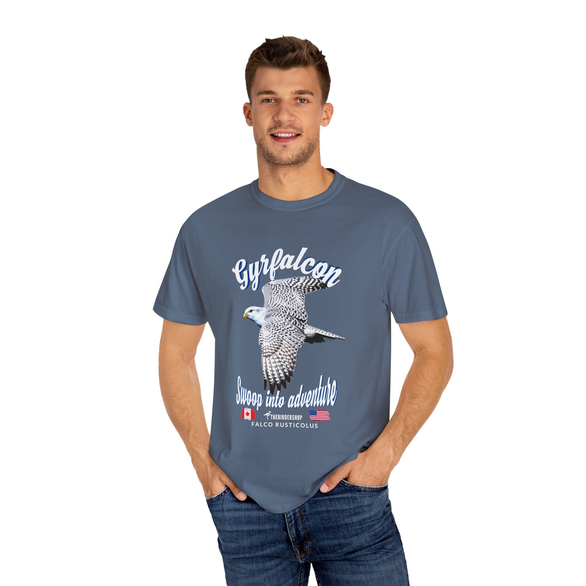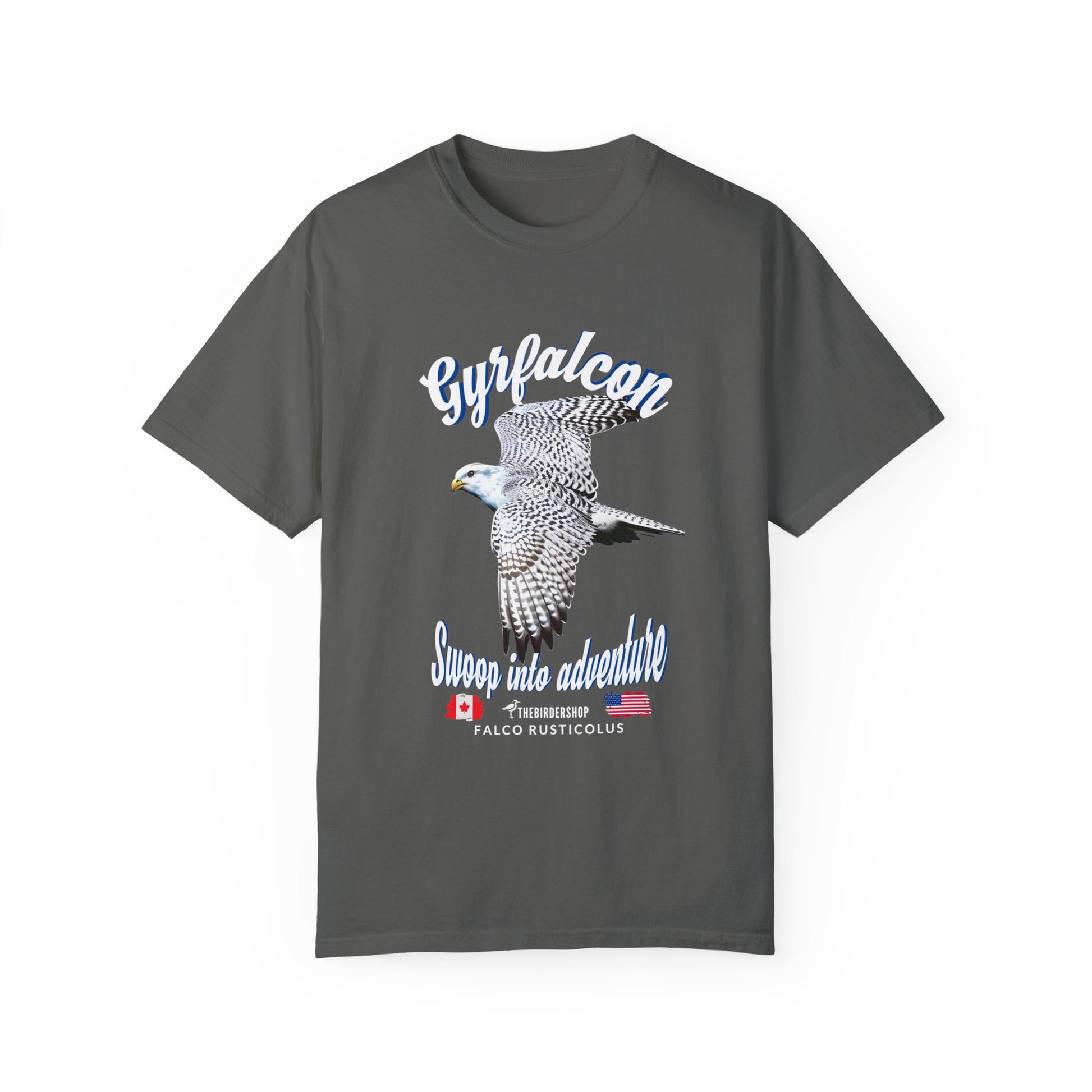 Experience the thrill of birding with our exclusive Gyrfalcon t-shirt, designed for passionate birders who admire the rare and majestic species . Made from 100% ring-spun cotton, this garment-dyed, soft-washed tee offers unparalleled comfort and durability with double-needle stitching and a relaxed fit. Don't miss the chance to showcase your love for the largest of all falcons, praised for its strength and beauty, and elevate your birding adventures today.