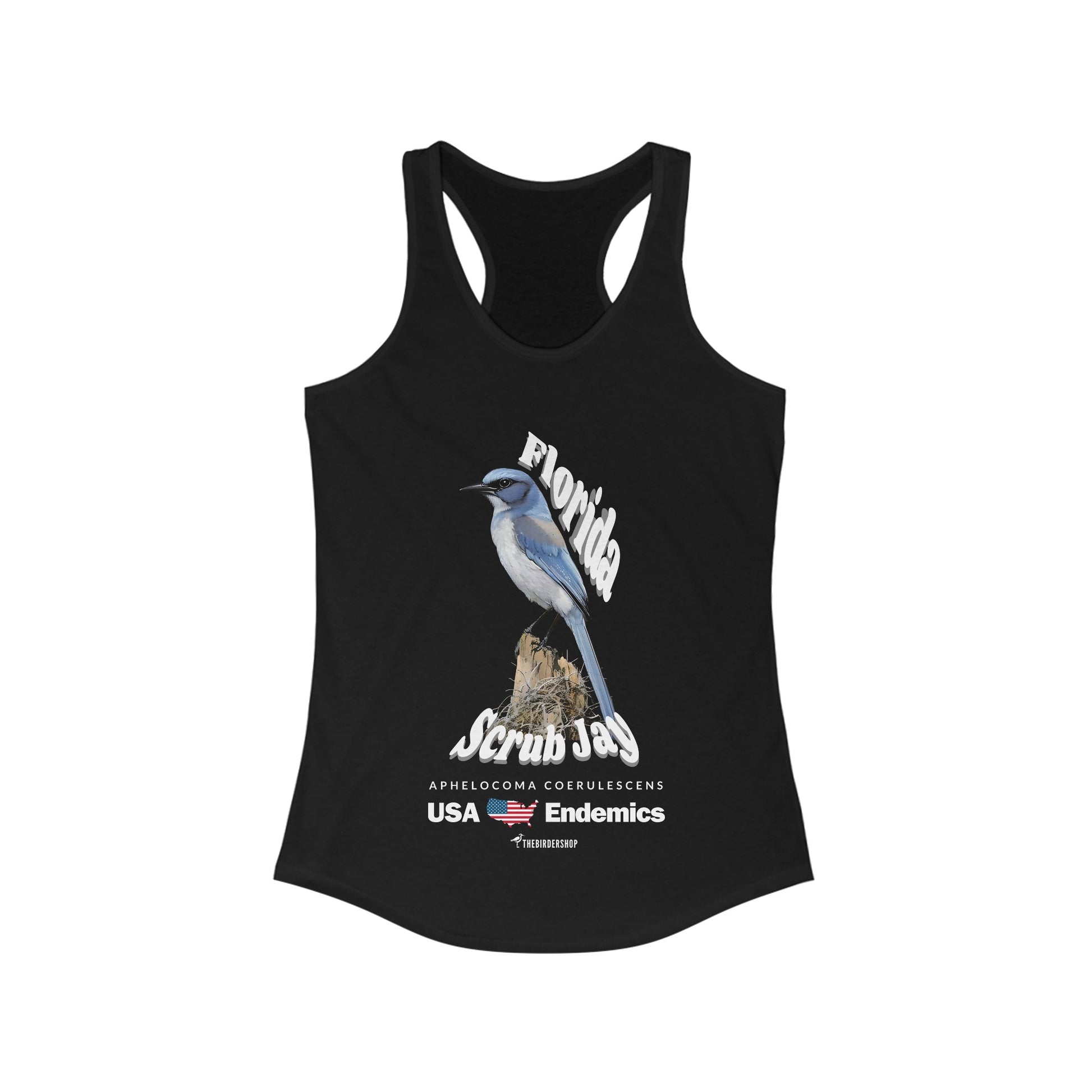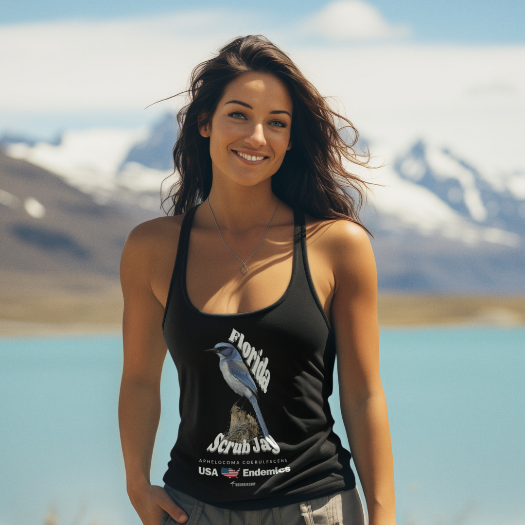 Showcase your love for USA endemic species, with our slim fit tank-top featuring the vibrant Florida Scrub-Jay. This tank-top is perfect for birders who appreciate the unique beauty and rarity of this species. The high-quality print highlights the striking colors of the Florida Scrub-Jay, while the racerback cut provides a flattering fit. Made for an active lifestyle, it's supremely lightweight and comfortable, with a scooped neckline and tear-away label for a scratch-free experience.